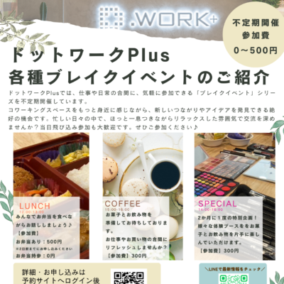 ドットワークPlusでは、仕事や日常の合間に、気軽に参加できる「ブレイクイベント」シリーズを不定期開催しています。