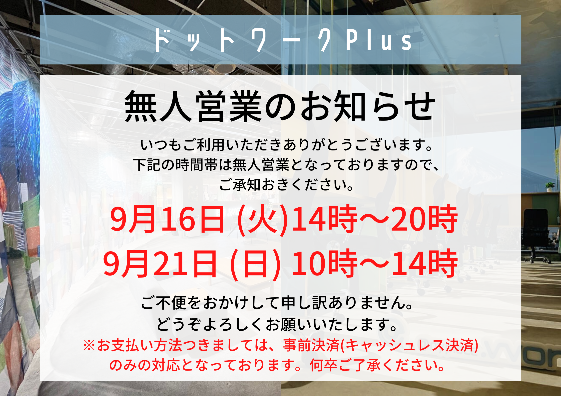 下記の時間帯は無人営業となっておりますので、ご承知おきください。